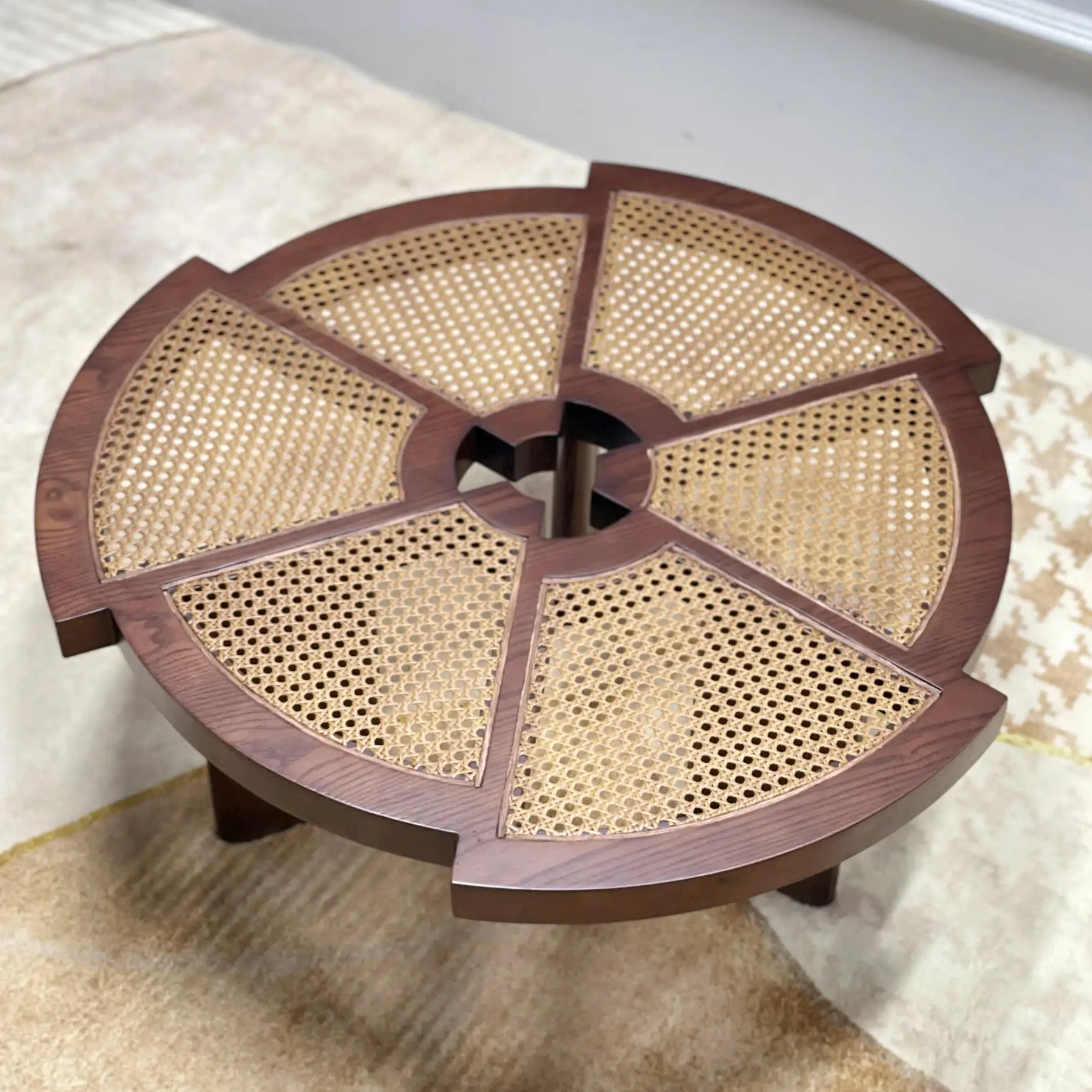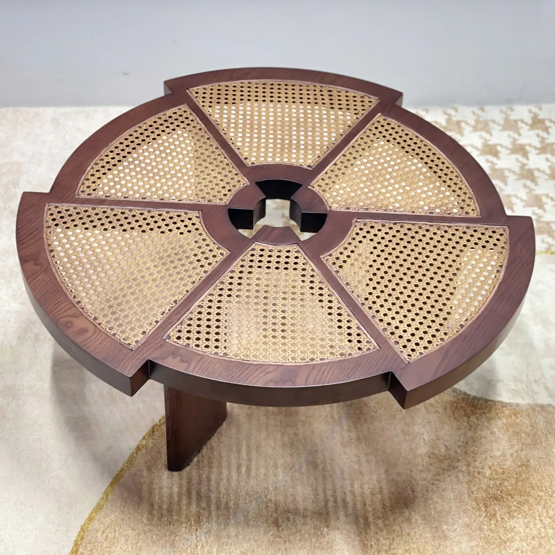Bề mặt mây đan được xử lý tỉ mỉ, giúp chiếc bàn vừa thoáng nhẹ vừa mang hơi thở tự nhiên, tạo cảm giác ấm áp cho không gian.