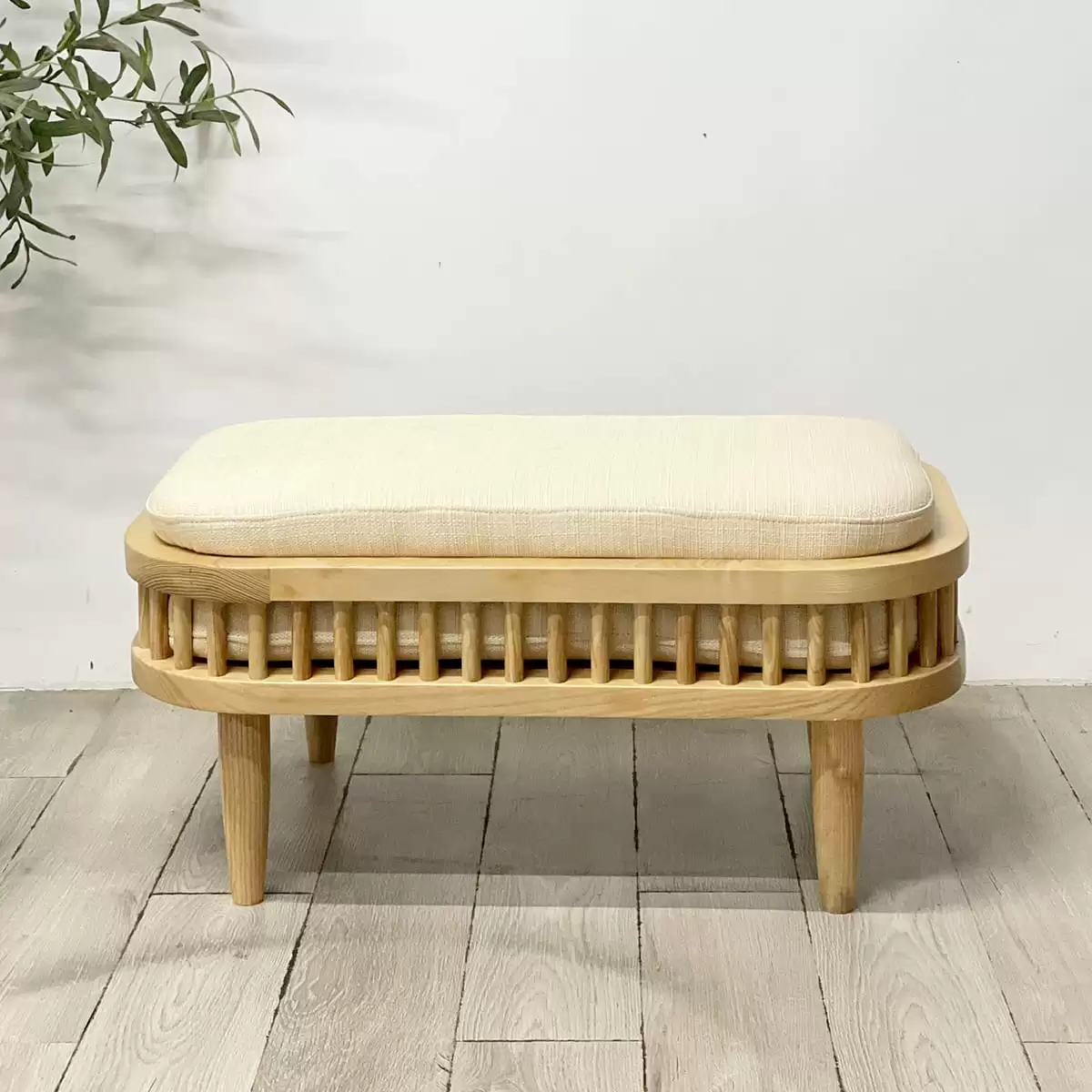 Đôn Sofa KBH – D0001 được thiết kế theo phong cách minimalist (tối giản), với đường nét gọn gàng, thanh thoát và bề mặt xử lý tỉ mỉ. Khung gỗ được bo tròn mềm mại ở các góc cạnh, kết hợp cùng những thanh gỗ đứng đều đặn tạo nên hiệu ứng thị giác độc đáo.