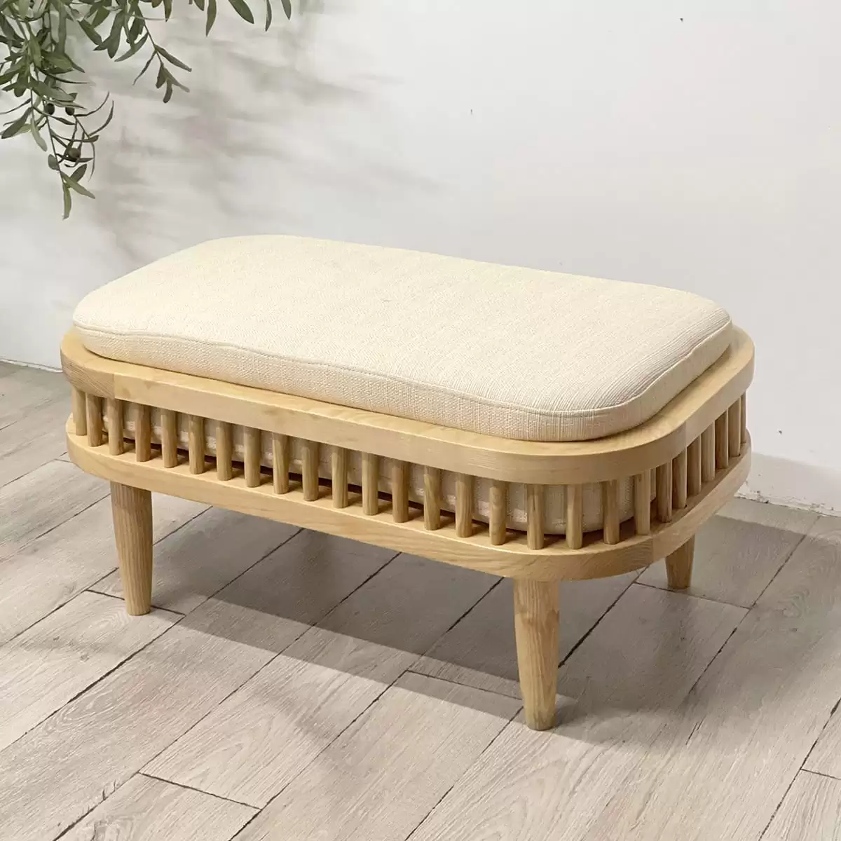 Đôn Sofa KBH D0001 không quá phô trương nhưng đủ tinh tế để thể hiện gu thẩm mỹ của gia chủ. Màu gỗ sáng tự nhiên kết hợp với gam vải trung tính mang đến sự hài hòa, dễ phối hợp trong bất kỳ không gian nào. Khi đặt trong phòng khách, chiếc đôn giúp không gian thêm điểm nhấn sang trọng; khi đặt trong phòng ngủ, nó lại mang đến cảm giác thư giãn, an yên.