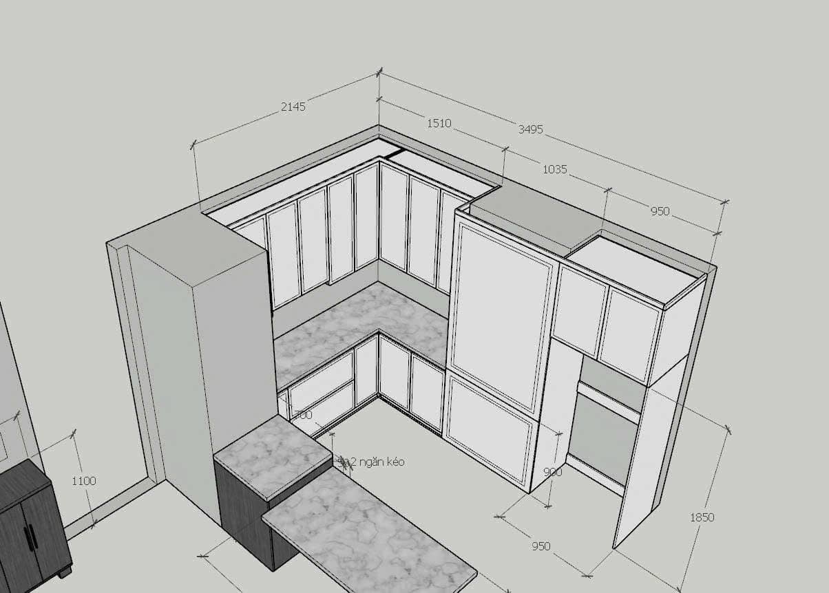 Bản vẽ tủ bếp sau khi đã tư vấn và lắng nghe mong muốn từ khách hàng về căn bếp