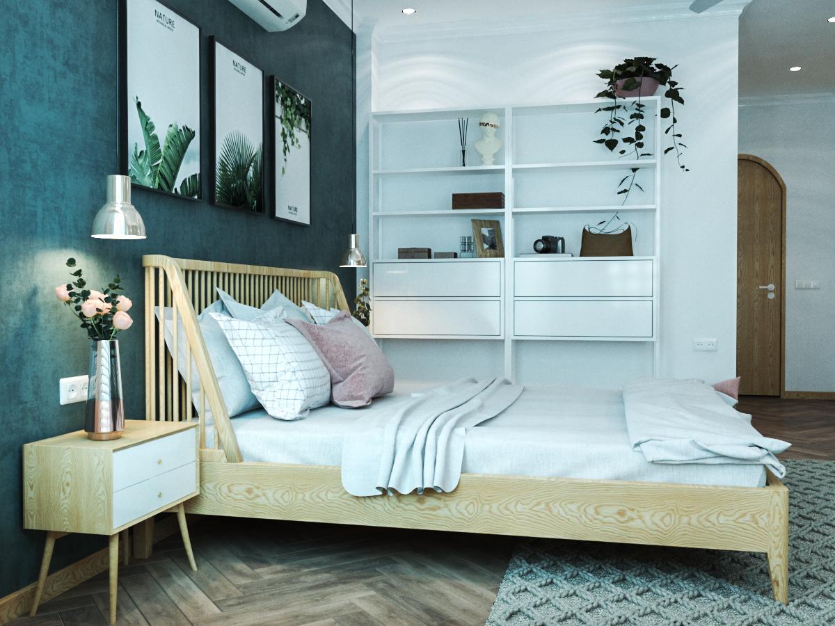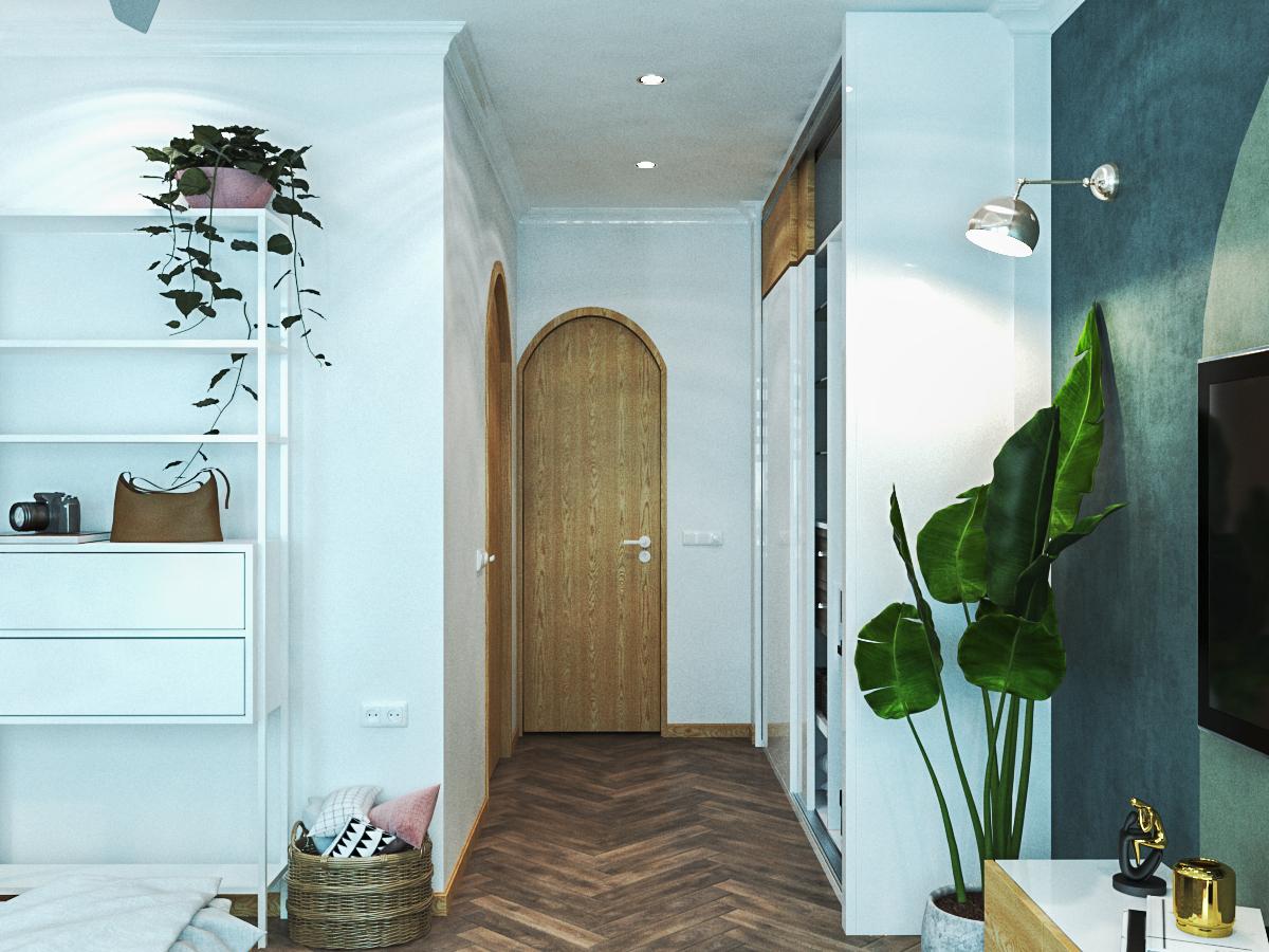 Mỗi phòng ngủ sẽ gồm 1 phòng vệ sinh khép kín ngay bên cửa vào phòng, tạo thành một hành lang nhỏ nơi đặt tủ quần áo của mỗi phòng. Đi vào bên trong phòng ngủ khá nhỏ nên việc sắp xếp 1 giường ngủ, kèm 2 tab đầu giường và một kệ tivi treo tường. Phong cách nội thất Scandinavian được sử dụng nhằm đem đến sự nhẹ nhàng, thanh thoát cho mỗi phòng ngủ.