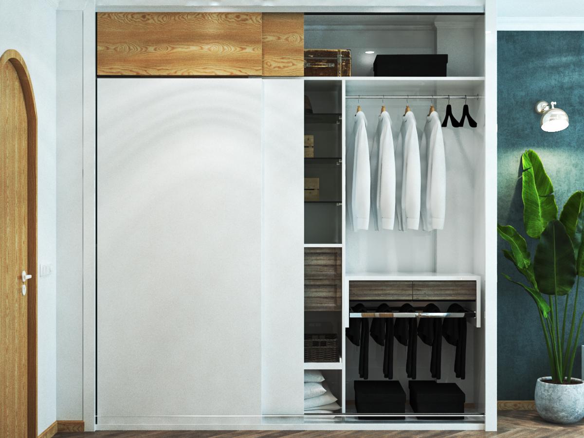 Diện tích khá chật nên tủ quần áo được sử dụng cánh lùa vừa không làm tốn không gian của hành lang lại mang được nét hiện đại trong các sản phẩm nội thất.
