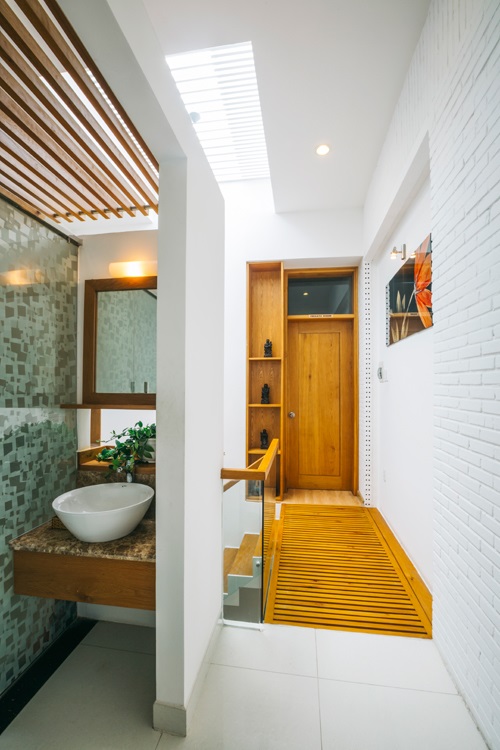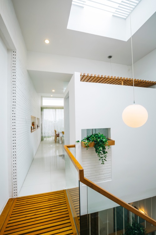 Hành lang hay còn gọi là lối lưu thông trong nhà trở thành “cầu nối” và là “trái tim” của cả ngôi nhà – đây là hệ thống điều hòa không khí, ánh sáng cho toàn không gian trọng nhà. Thiết kế này giúp gia chủ khắc phục vấn đề diện tích một cách cực kỳ hiệu quả.