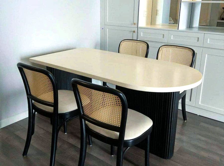 Ghế ăn Thonet – G0040 sở hữu khung gỗ Tần Bì (Ash) chắc chắn, bền bỉ theo thời gian. Chất liệu này không chỉ mang đến kết cấu vững chắc, mà còn góp phần tạo nên vẻ đẹp mộc mạc, gần gũi với thiên nhiên.