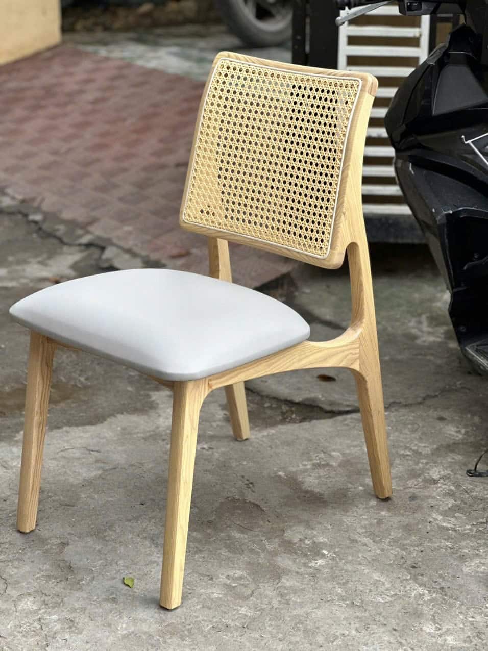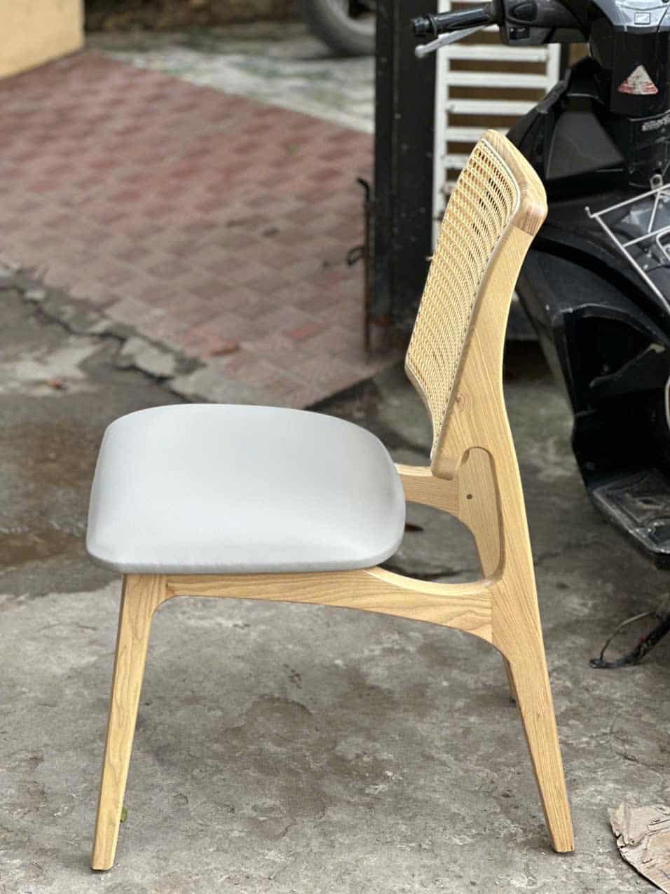 - Lưng ghế: Mây đan thủ công, giúp tăng độ thoáng khí và tạo cảm giác nhẹ nhàng, mộc mạc.