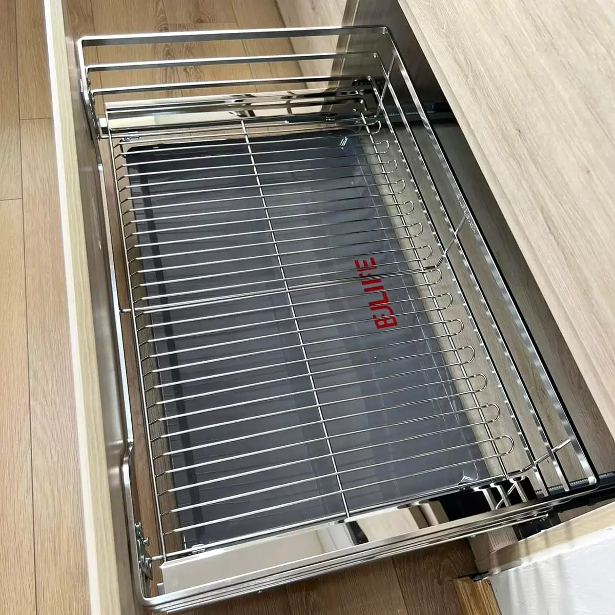 Các mẫu giá xoong nồi của Eulife thường được thiết kế dạng ray trượt, có thể kéo ra – đẩy vào nhẹ nhàng. Nhờ đó, người dùng dễ dàng lấy xoong nồi ở mọi vị trí mà không cần cúi quá sâu vào tủ.