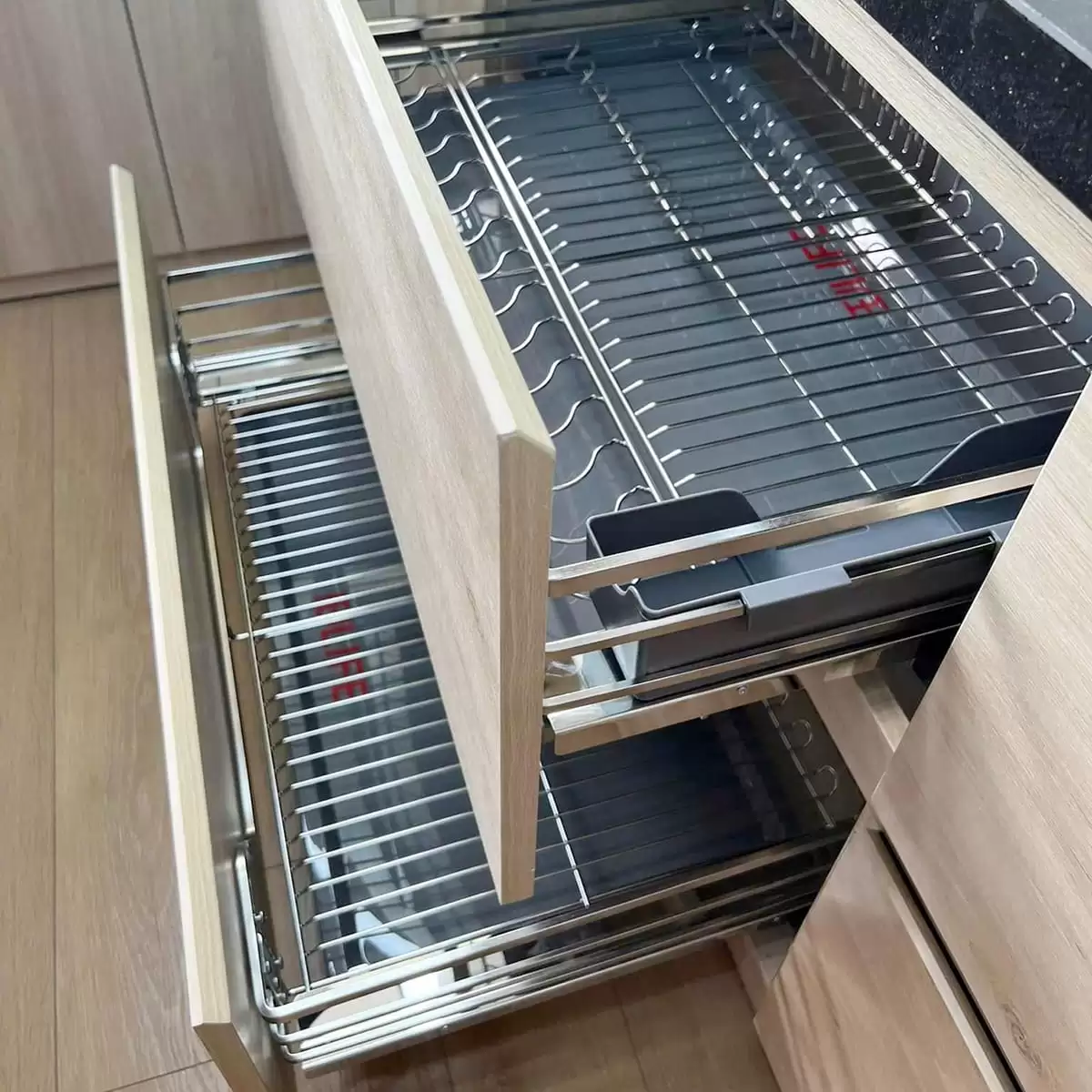 Nhờ sử dụng hệ ray giảm chấn cao cấp, giá xoong nồi vận hành êm ái, không gây tiếng ồn, đồng thời hạn chế rơi vỡ khi sử dụng. Đây là điểm cộng lớn giúp sản phẩm trở thành lựa chọn đáng tin cậy của nhiều gia đình.