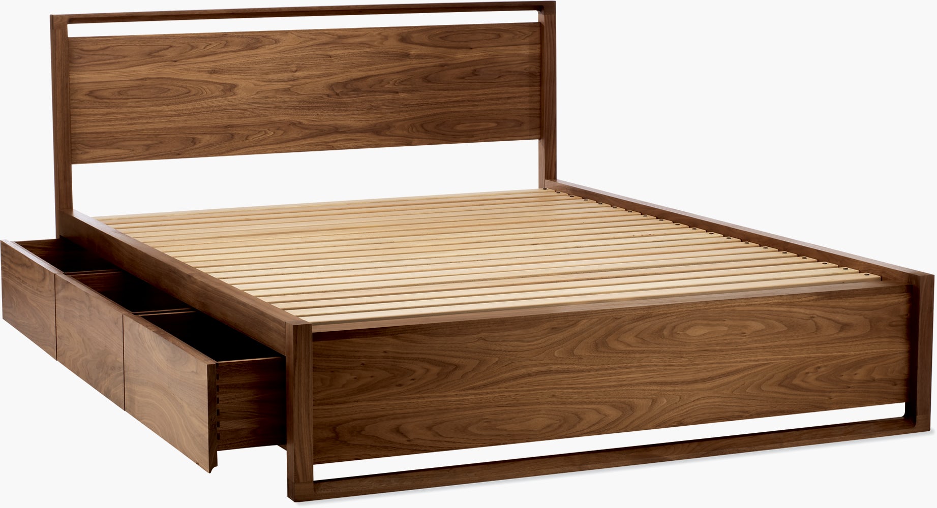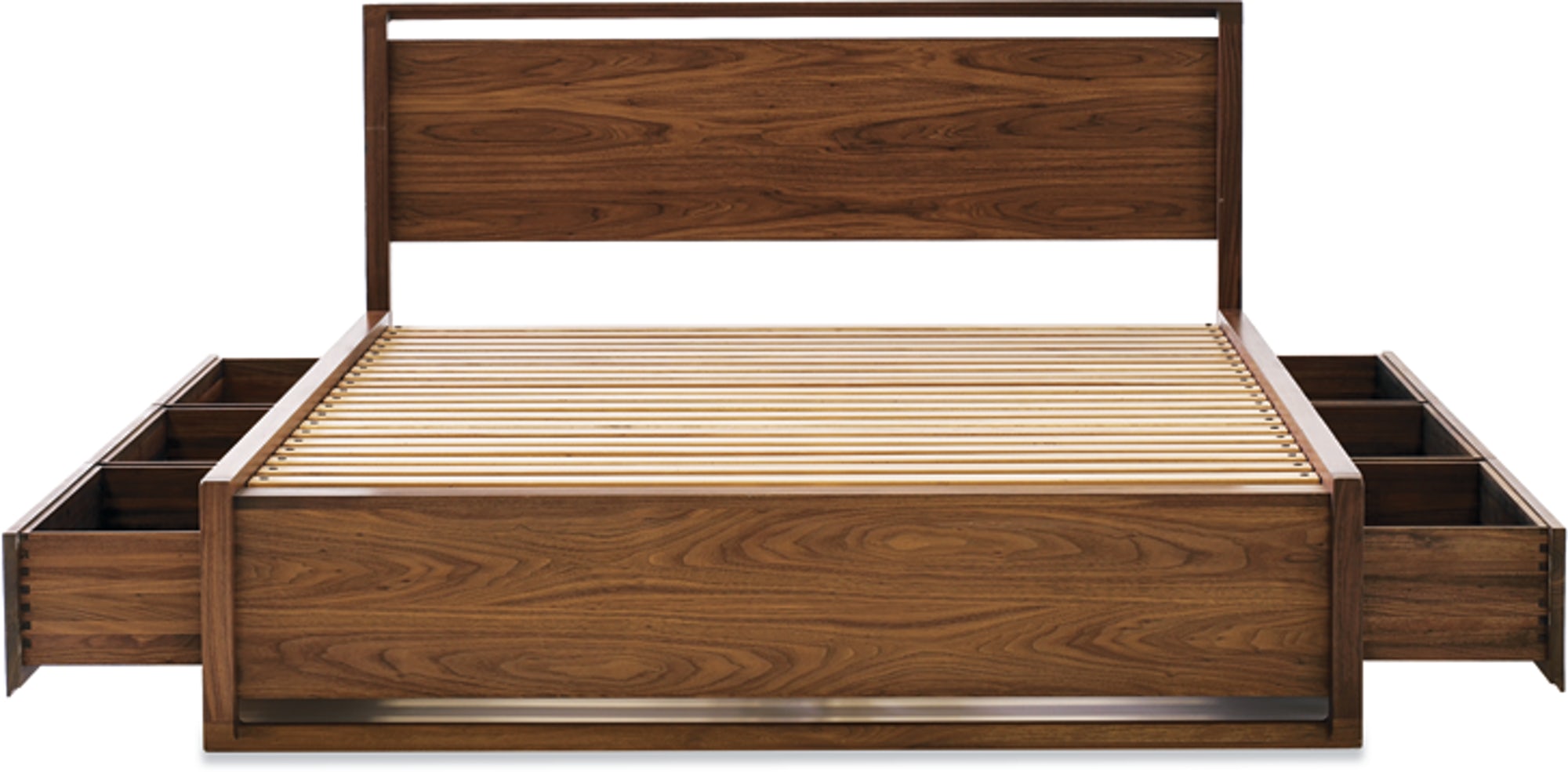 Giường ngủ Matera GN008 được làm chủ đạo từ gỗ sồi hay gỗ óc chó được nhập khẩu từ châu âu, phần đầu và đuôi giường được lùa lá MDF phủ Veneer gỗ. Các ngăn kéo được làm với kích thước lớn nhằm tăng diện tích sử dụng cho các ngăn kéo.