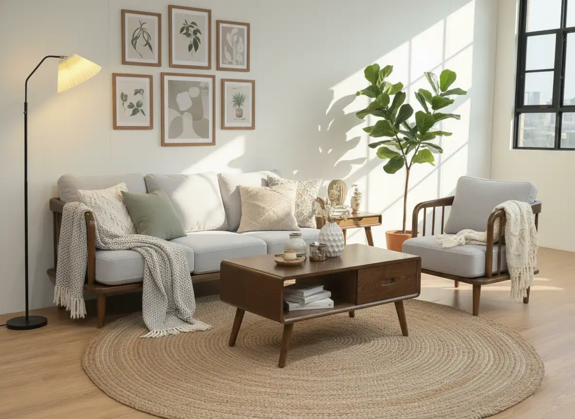 Dễ phối cùng bàn trà gỗ, thảm đan sợi, cây xanh, nệm trang trí.