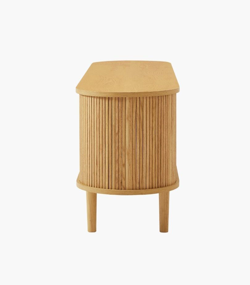 Hình bầu dục bắt mắt của kệ tivi KT0007 chắc chắn sẽ để lại ấn tượng với khách hàng của bạn. Đồ nội thất với các đường cong không chỉ hợp xu hướng hiện nay mà còn là sự lựa chọn tuyệt vời để giữ cho không gian nhỏ không có cảm giác chật chội, vô cùng an toàn với những gia đình có trẻ nhỏ.