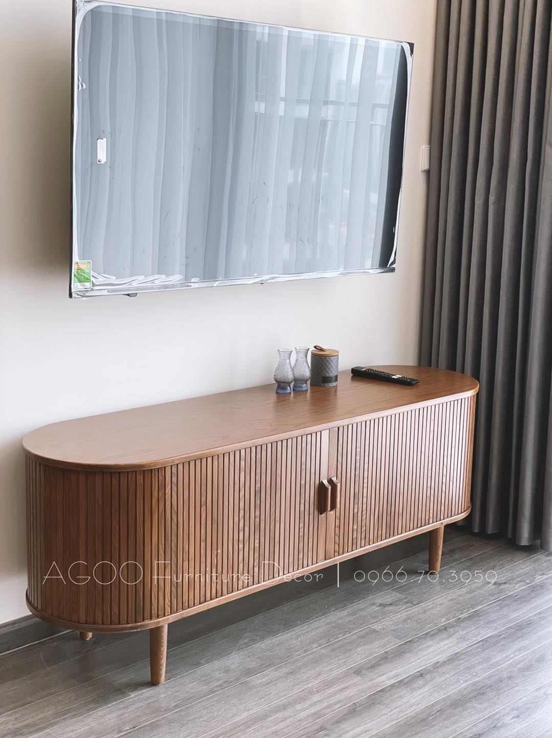 Kệ tivi cánh lùa KT0007 được thiết kế đẹp mắt với hình dáng bầu dục với điểm nhấn là các lan thẳng đứng chạy song song tạo ra hệ cánh lùa độc đáo và vô cùng bắt mắt. Mẫu kệ được thiết kế với 4 hộc tủ bên trong có thể chứa các thiết bị như đầu thu, cục wifi, các thiết bị điều khiển.. và cũng có thể là sách hay các đồ nhỏ cần thiết trong nhà.