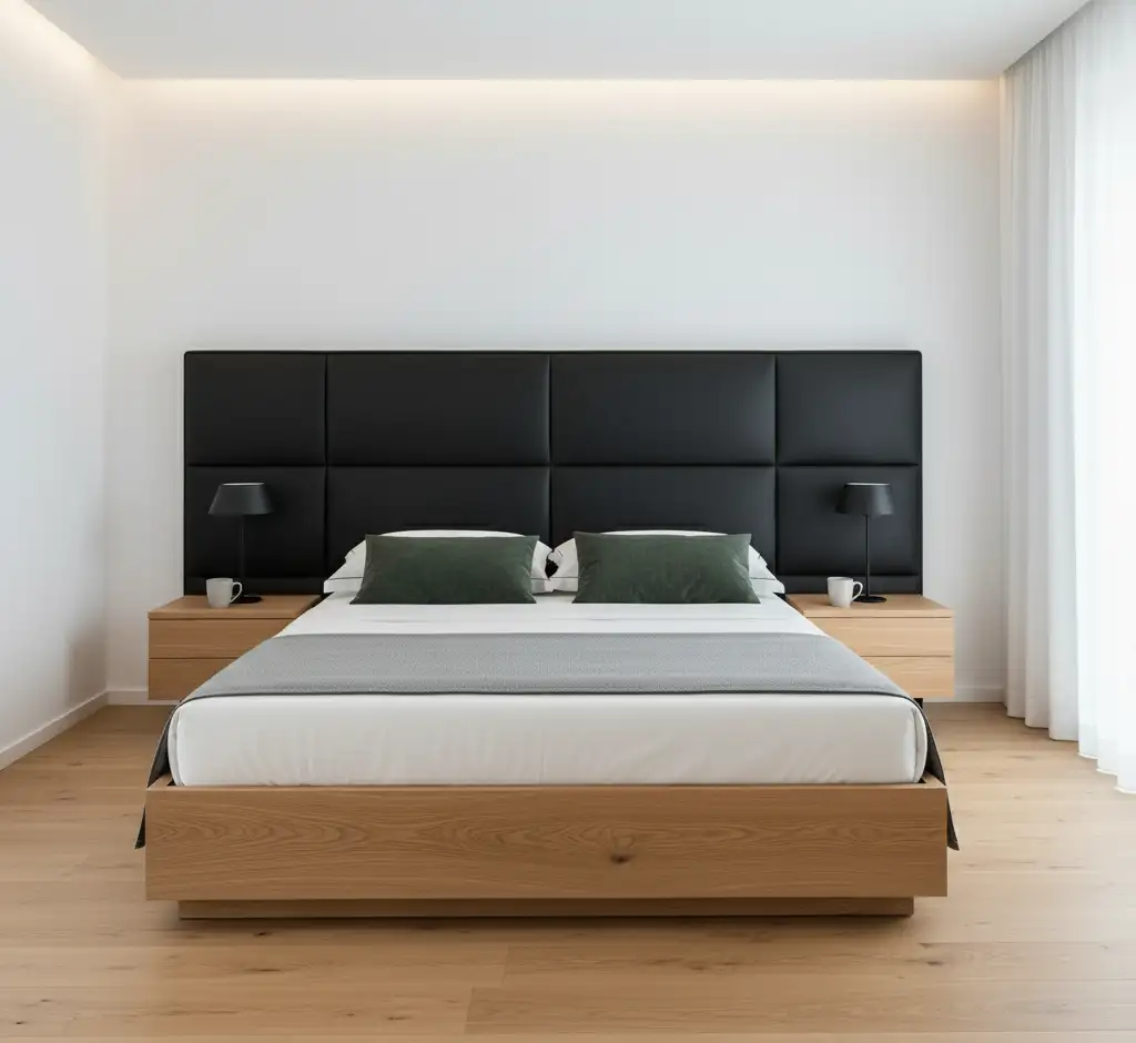 Giường phù hợp với các phong cách Bắc Âu (Scandinavian), Japandi, Minimalist và Modern Luxury nhẹ. Tông gỗ sáng và headboard da tối màu giúp dễ phối với nhiều kiểu phòng ngủ khác nhau.