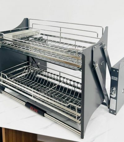 Kệ bát đĩa nâng hạ EUlife – nan dẹt – INOX 304