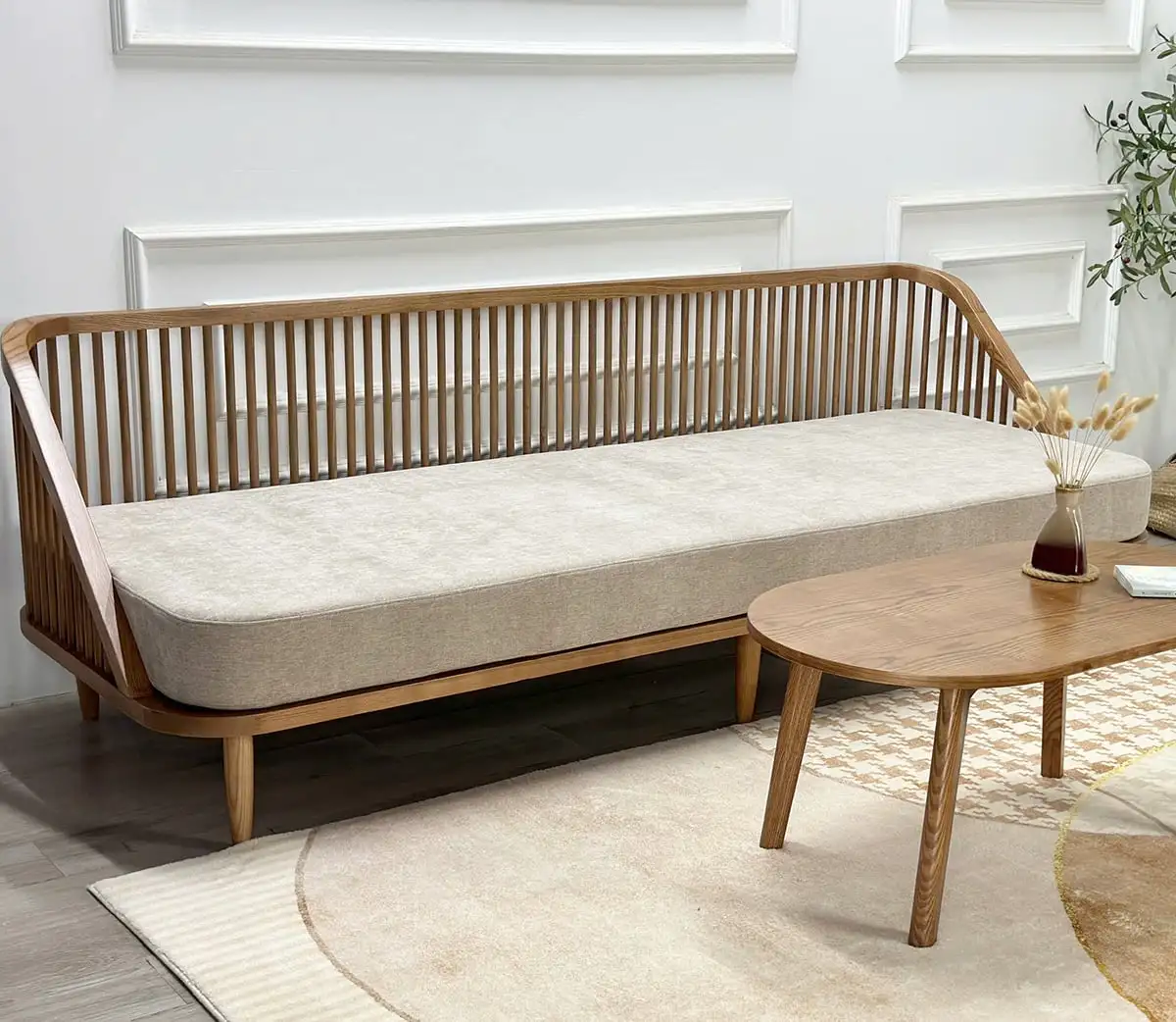 Sofa KBH-L (Sofa Văng Gỗ Nan Lưng) không chỉ là một món nội thất, mà là một tuyên ngôn về phong cách sống tinh tế. Lấy cảm hứng từ sự tối giản, ấm áp của thiết kế Scandinavian và đường nét thanh lịch của Mid-Century Modern, mẫu sofa này mang đến sự cân bằng hoàn hảo giữa thẩm mỹ và công năng.