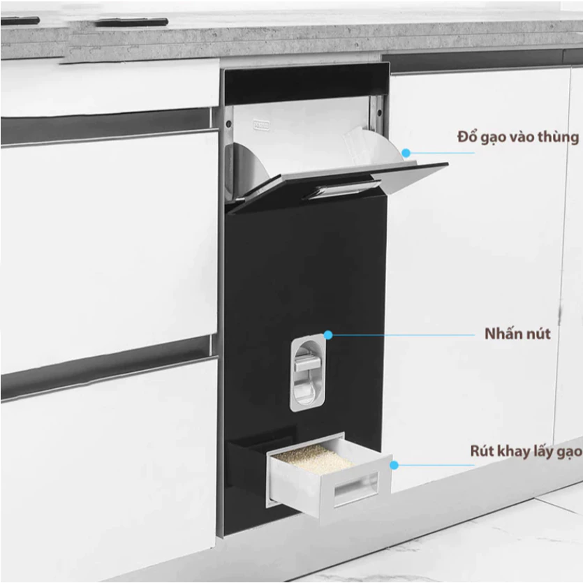 👉 Thẩm mỹ sang trọng, bảo quản gạo kín đáo hơn, cơ chế lấy gạo thông minh và giúp không gian bếp gọn gàng hiện đại.
