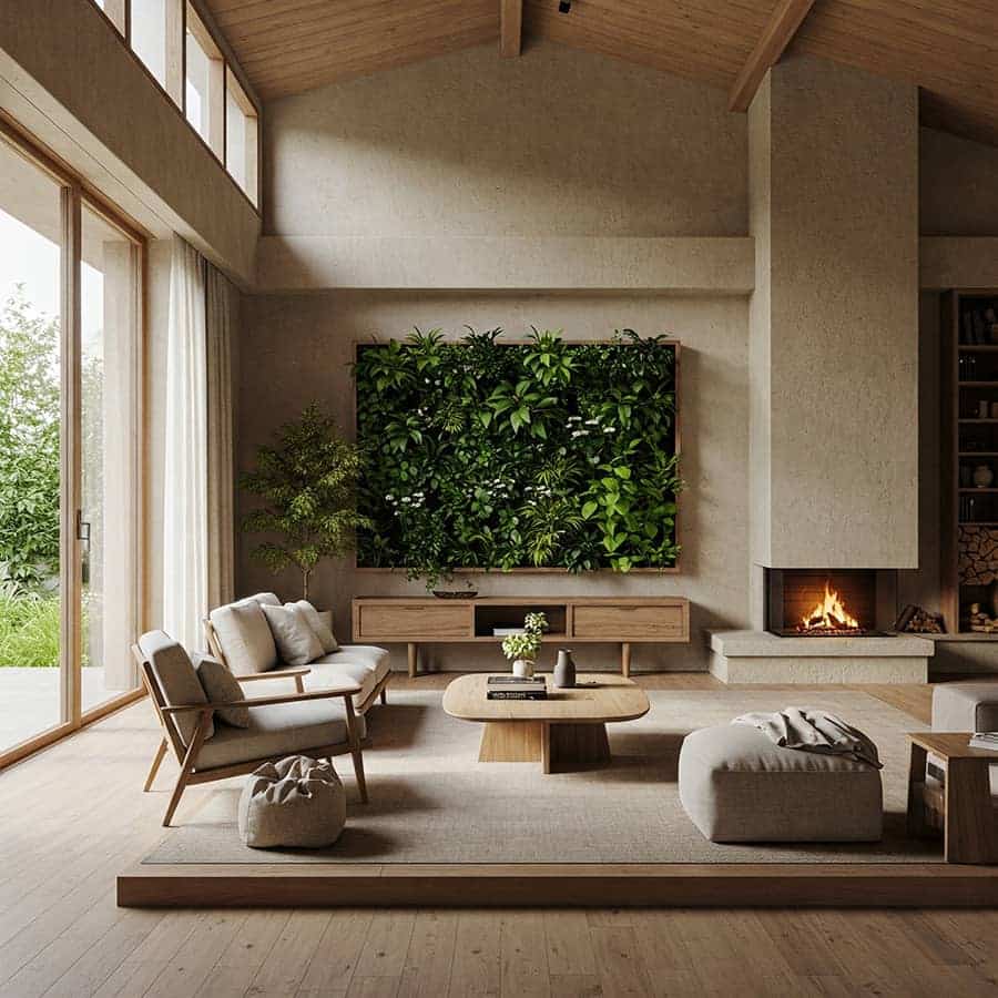 Phong cách Organic Minimalism kết hợp tinh thần tối giản với vật liệu hữu cơ và yếu tố thiên nhiên như gỗ, đá, sợi tự nhiên, cùng sự xuất hiện của cây xanh trong không gian. Đây là phong cách đề cao sự bền vững và sức khỏe tinh thần, đang rất được ưa chuộng trong năm 2025.