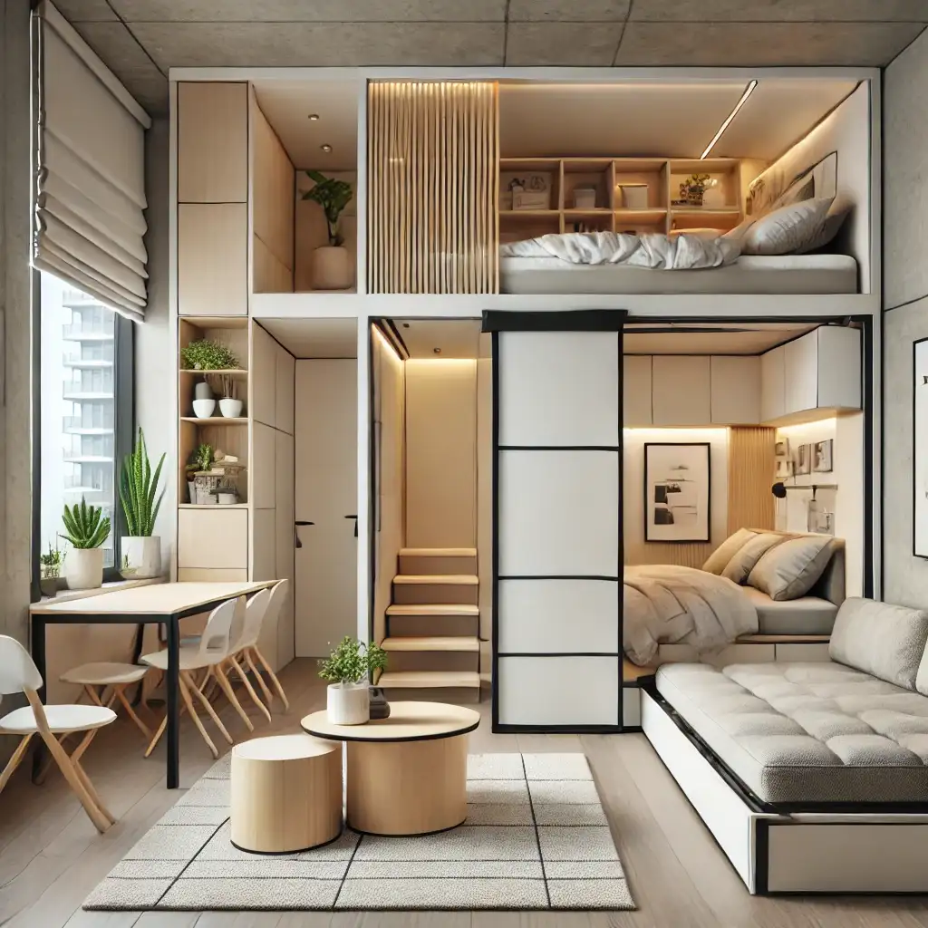 - Đồ nội thất thông minh như giường gấp, bàn xếp gọn, ghế đa chức năng.