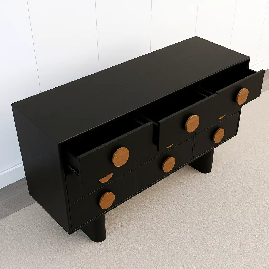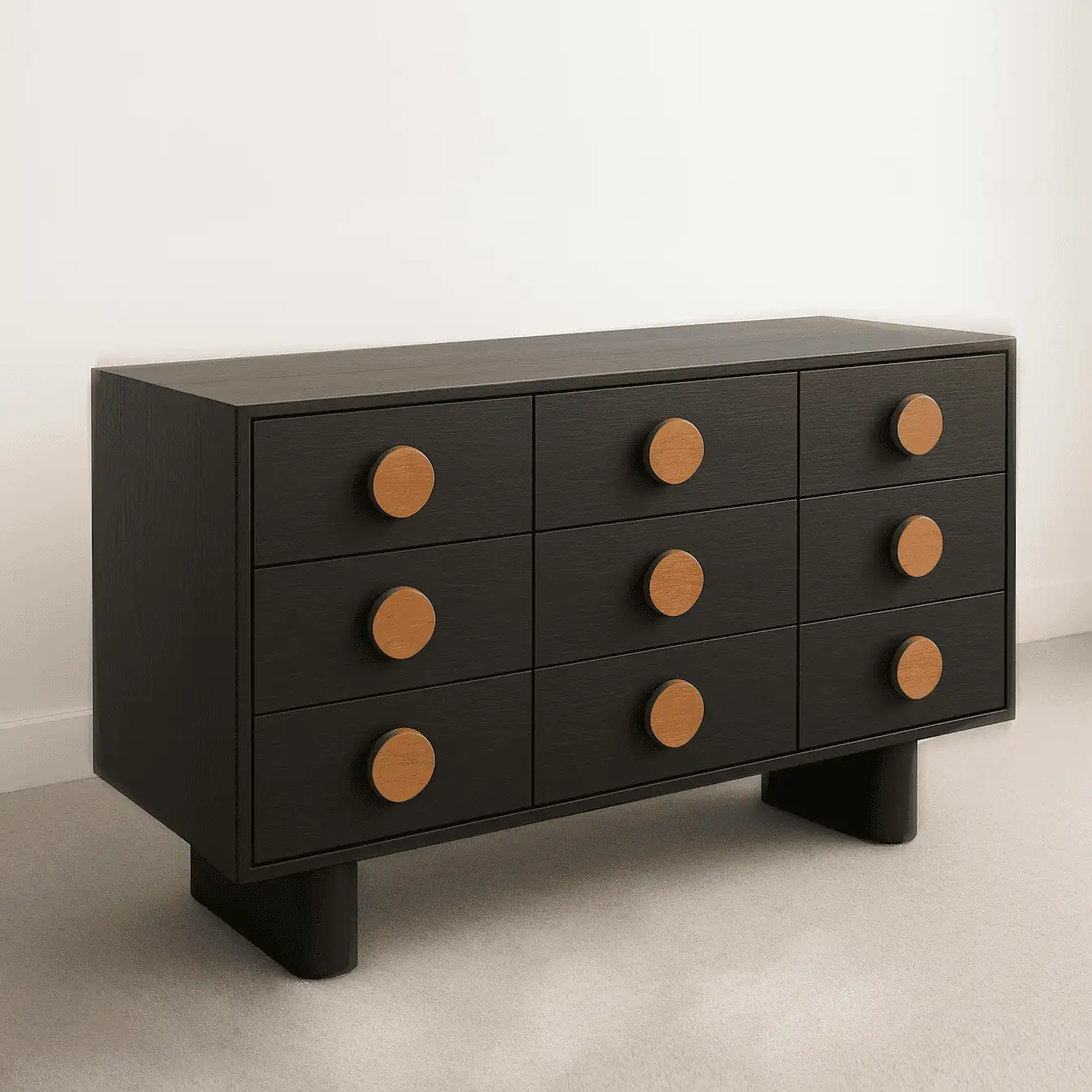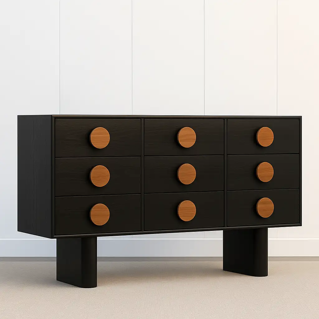 Tủ Sideboard “NOBI” – Japandi Black Oak Edition (“Nobi” trong tiếng Nhật nghĩa là “rộng rãi, thoáng đãng” – thể hiện đúng tinh thần tối giản, mộc mạc nhưng sang trọng của mẫu tủ này.)